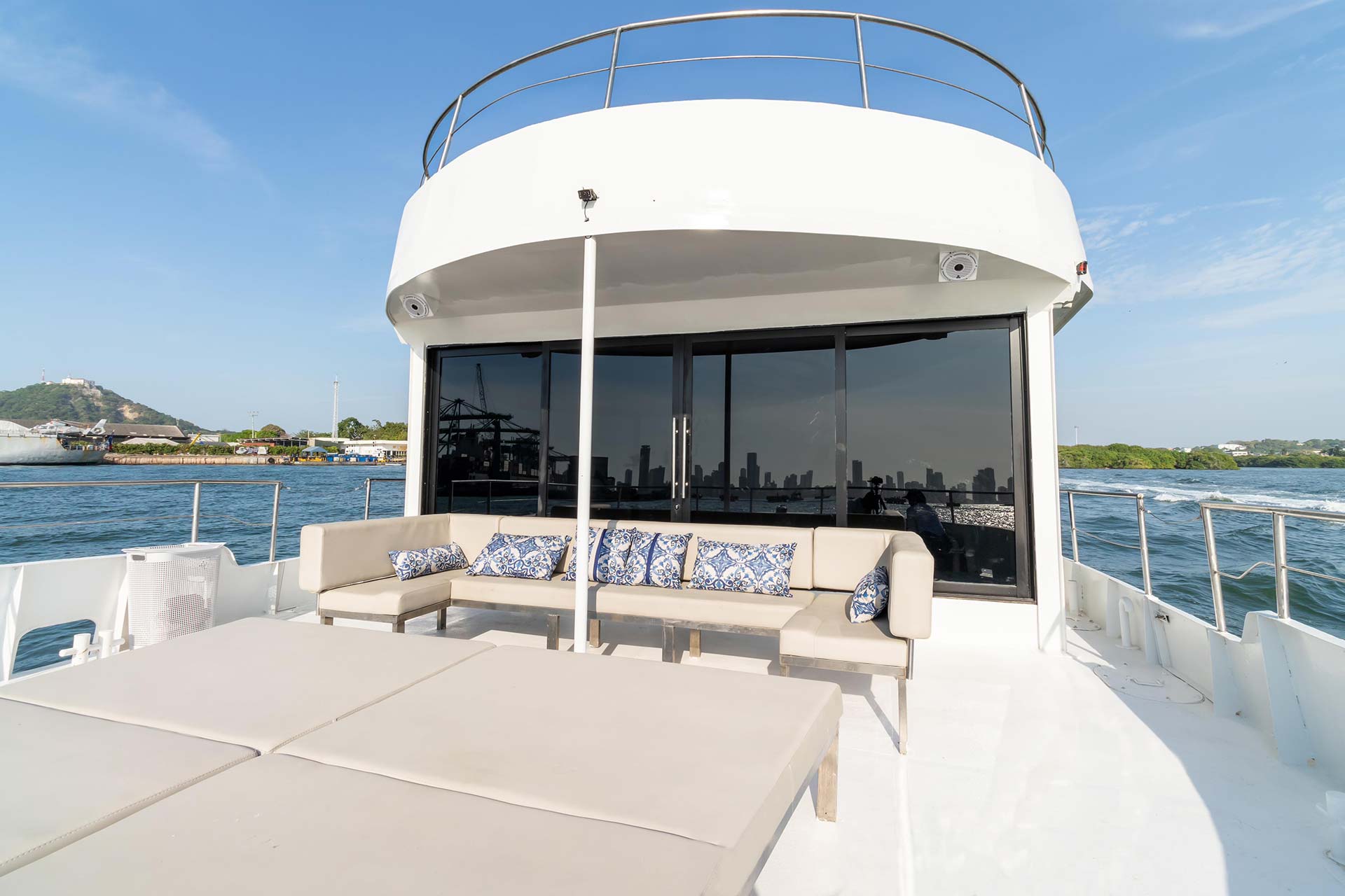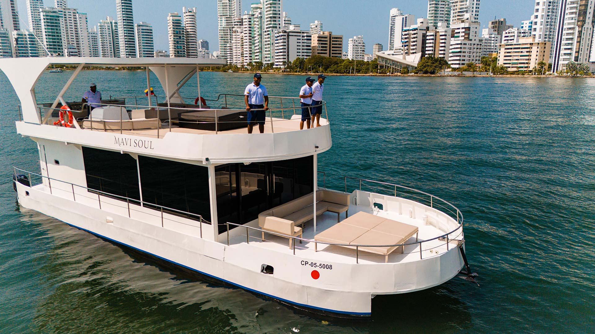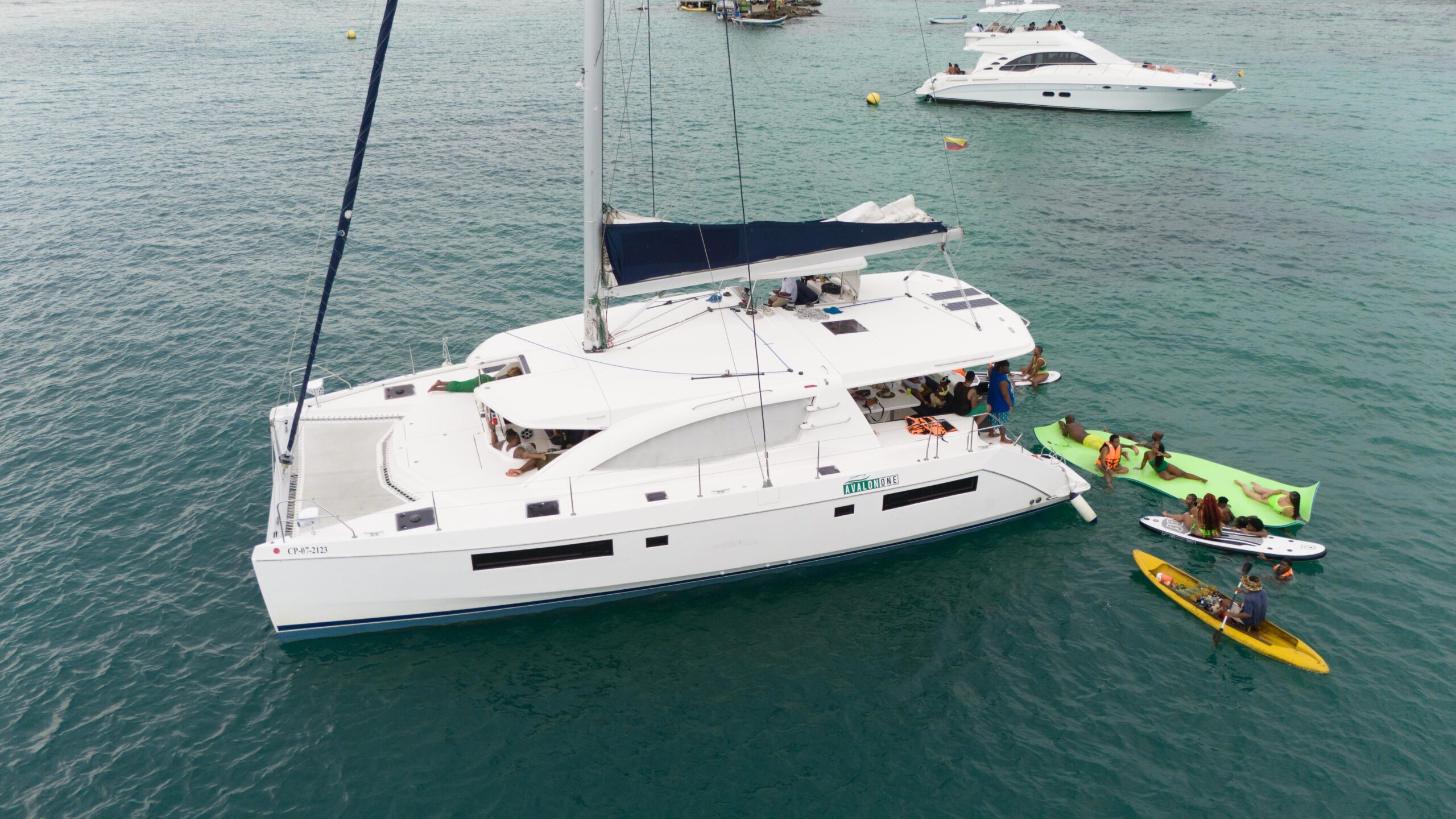 Discover the Rosario Island on a luxury catamaran. Enough space for your friends or family to hang out and soak in our beautiful Colombian islands.